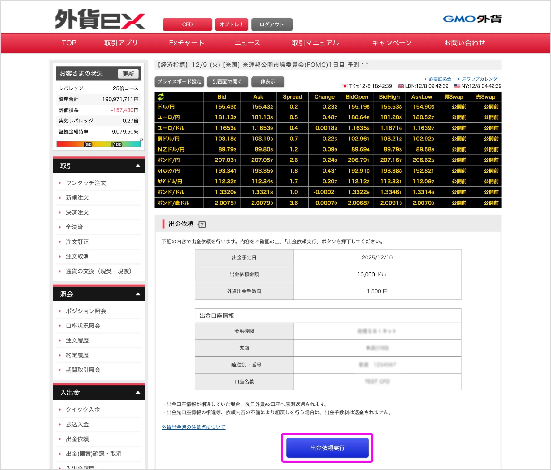 出金依頼を行います。