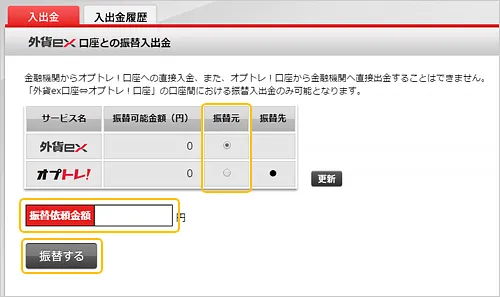 STEP2 外貨ex口座からオプトレ!口座へ資金振替